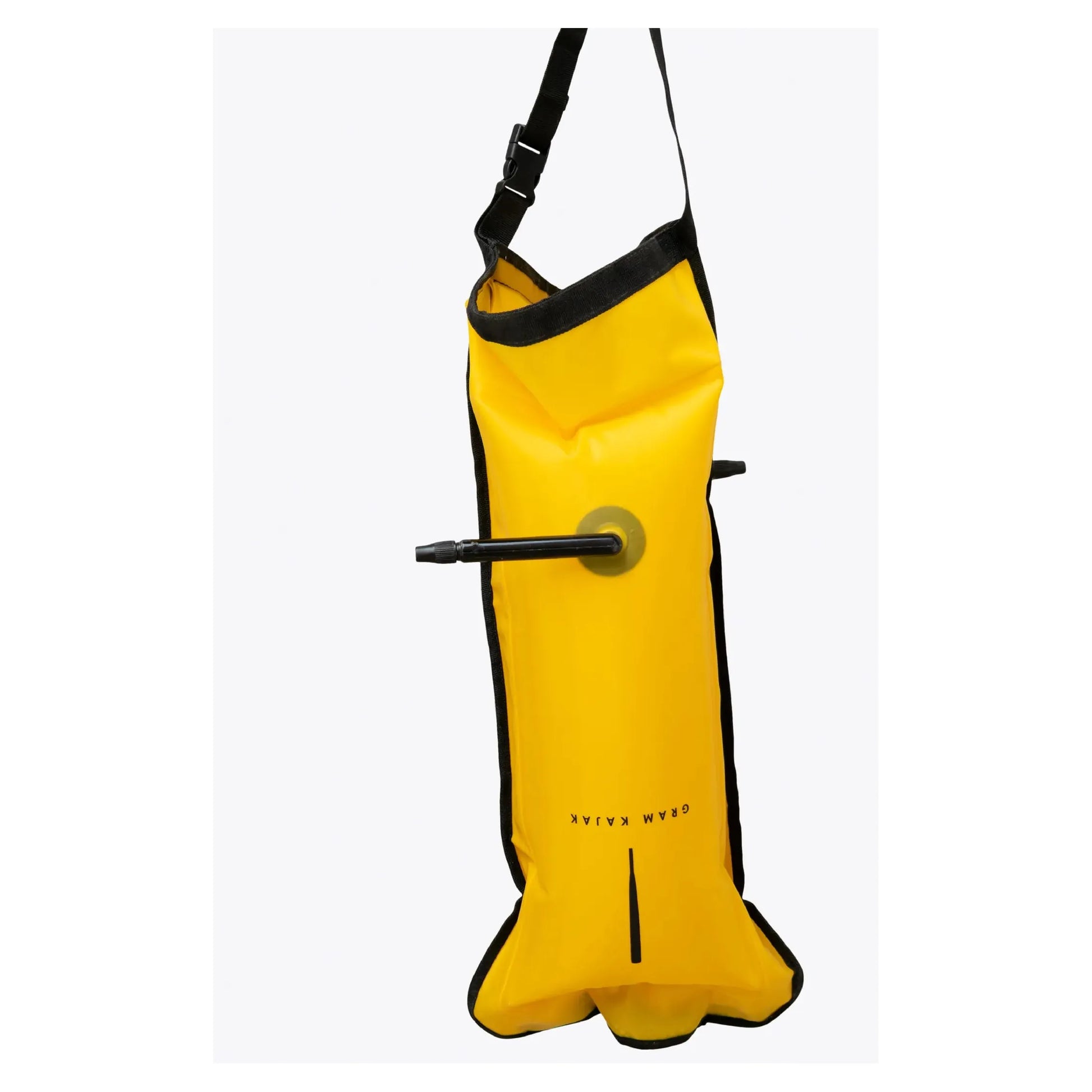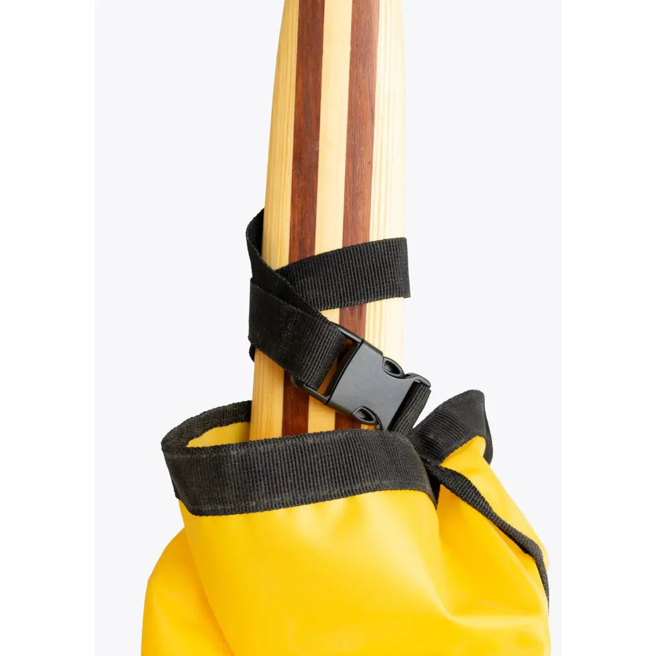 Anyone who has tried a paddle float rescue has experienced the float slides off the blade. This paddle float is made especially for greenland paddles, but it will fit most other types of paddles. The float is longer and narrower than most other inflatable versions on the market. It has dual air chambers, each with its own valve. Should the paddle float puncture, you have a spare chamber to provide sufficient buoyancy. The float comes with an extra long strap and an interlocking buckle. The strap is wrapped around the blade two times and and then tightened which secures the float firmly. The mechanism relies on friction, and will tighten its grip in proportion to the forces added upon it.