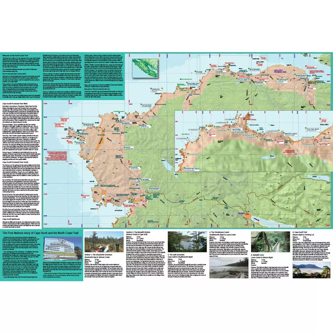 About the North Coast Trail: The North Coast Trail is a 43.1-km extension to the Cape Scott Trail that officially opened in May 2008. Wild Coast Publishing's North Coast Trail map brings that trail to life, as well as an incredible marine adventure route -- the Cape Scott Marine Trail..